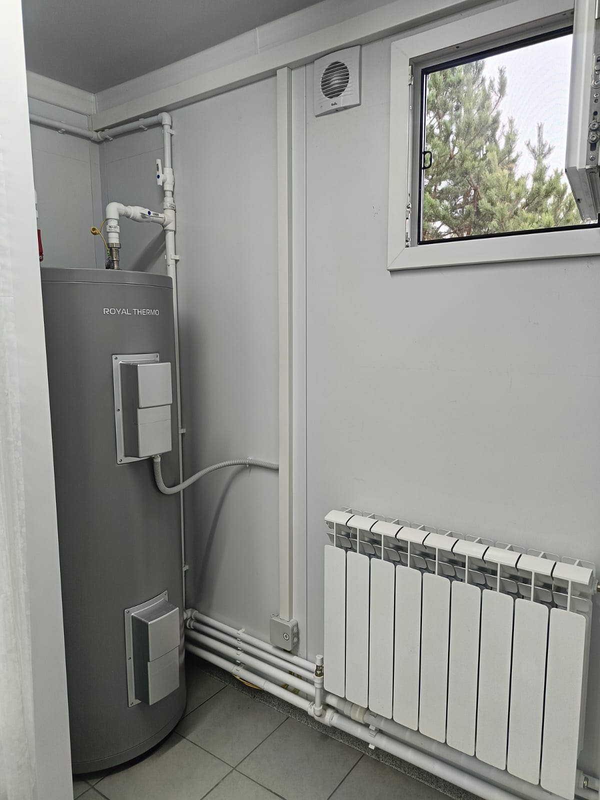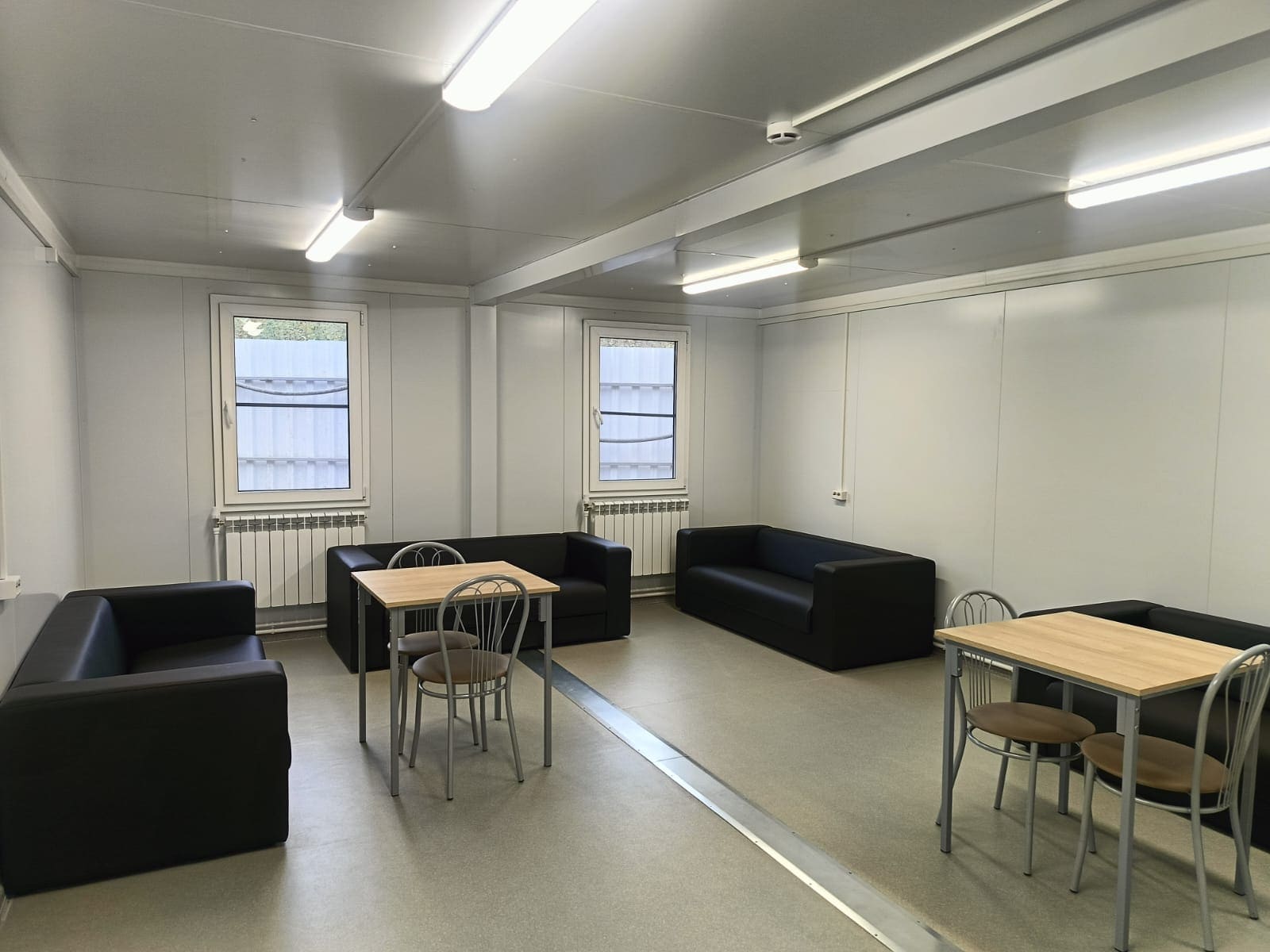 Здание комплектовалось системой водяного отопления с учетом ИТП, пожарной сигнализацией, СКУД, мебелью и бытовой техникой.